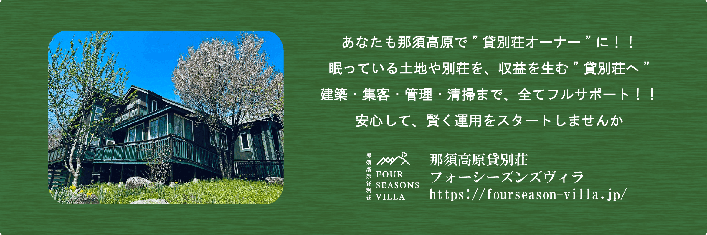 第二緑泉苑|自然に囲まれた別荘感のある建物。 和洋モダンな障子にペット対応のフロア、そこから眺める緑に癒される物件。 那須街道から約300mの好立地でバス利用もしやすい。 貸別荘もお薦めの消防適合工事済み