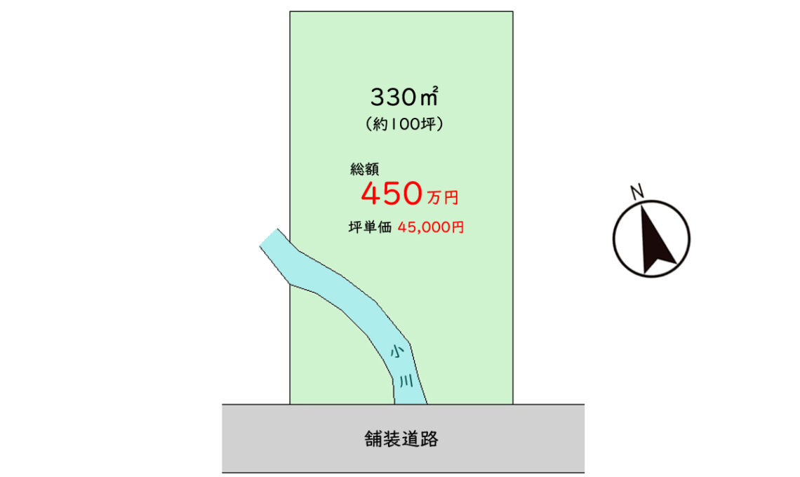平和台199坪|小川付きの理想的な地形を持った物件です。「敷地のマウンドになっている部分に建物を建て、リビングから小川を見下ろすことができる理想的な地形です。北西部分に建物を配置し南東に小川の流れる庭園を配置することができます。その小川のそばに バレルサウナとバーベキューハウス があれば素晴らしいですね」