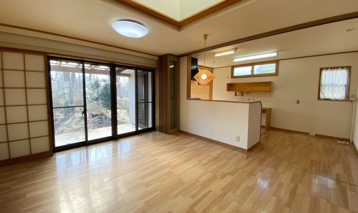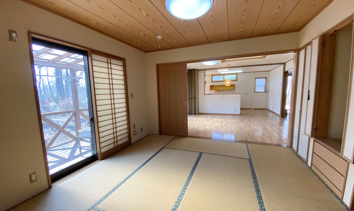 第二緑泉苑|自然に囲まれた別荘感のある建物。 和洋モダンな障子にペット対応のフロア、そこから眺める緑に癒される物件。 那須街道から約300mの好立地でバス利用もしやすい。 貸別荘もお薦めの消防適合工事済み