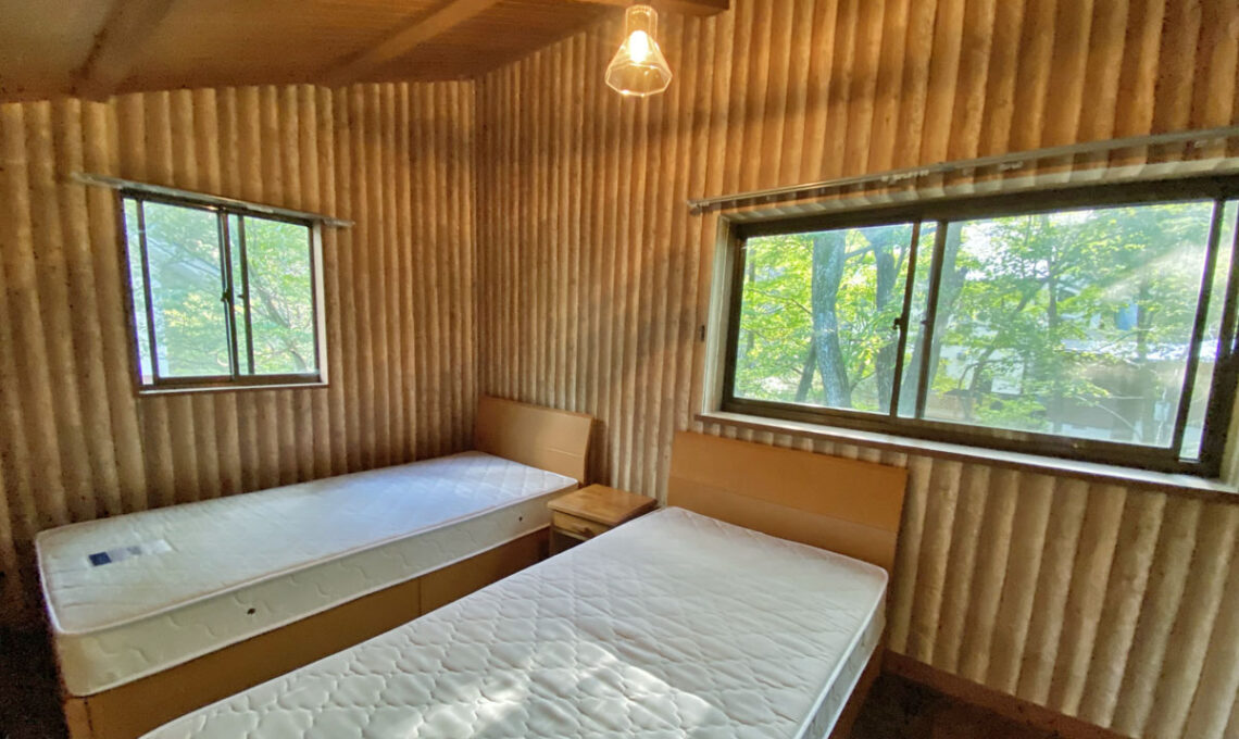 第二緑泉苑|自然に囲まれた別荘感のある建物。 和洋モダンな障子にペット対応のフロア、そこから眺める緑に癒される物件。 那須街道から約300mの好立地でバス利用もしやすい。 貸別荘もお薦めの消防適合工事済み